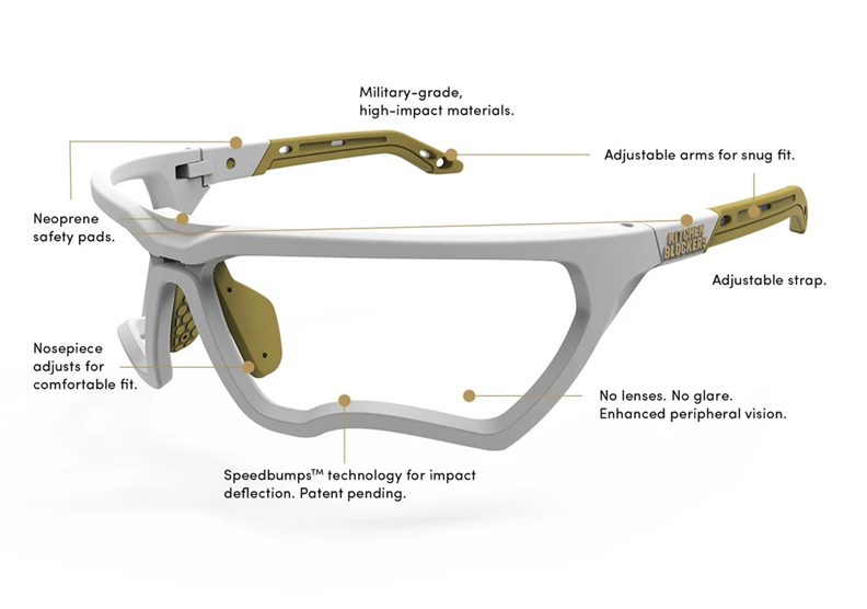 Lens Free Optimal Frame Shape: By having no lenses, Kitchen Blockers allows you to perform at your highest level without any light refractions and means zero fogging while you play the sport you love! Carefully crafted frame design using patented speed bump technology provides full peripheral vision so you are able to see whats happening on the court from all angles!